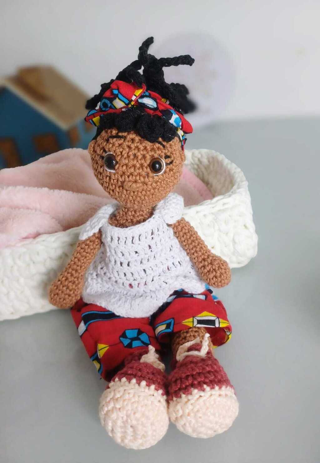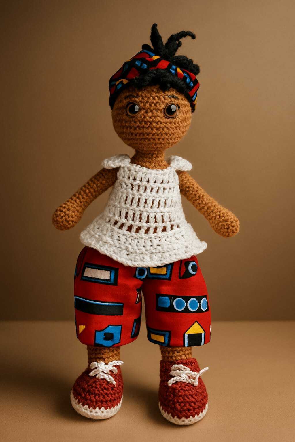 Veste camisa e tênis de crochê e calça comprida de tecido africano